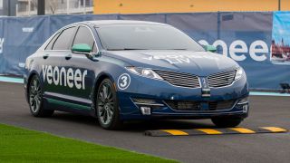 My test took place on a course behind the convention center in Las Vegas. The lot looked a bit like a racetrack for robots, with brightly painted lane markings on black asphalt. The car, splashed with the Veoneer logo and the name LIV (which stands for Learning Intelligent Vehicle), could do more than just drive on its own. I slipped into the backseat to monitor what was happening.