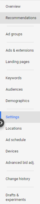 Select the campaign that you want to use for location targeting and locate the settings tab: