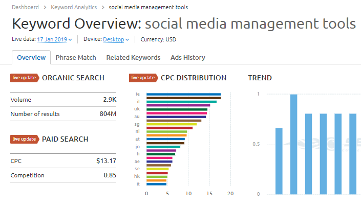 The problem with keywords like this is their lack of specificity. What kind of person, worker, business, etc., is looking for this social media management tool?