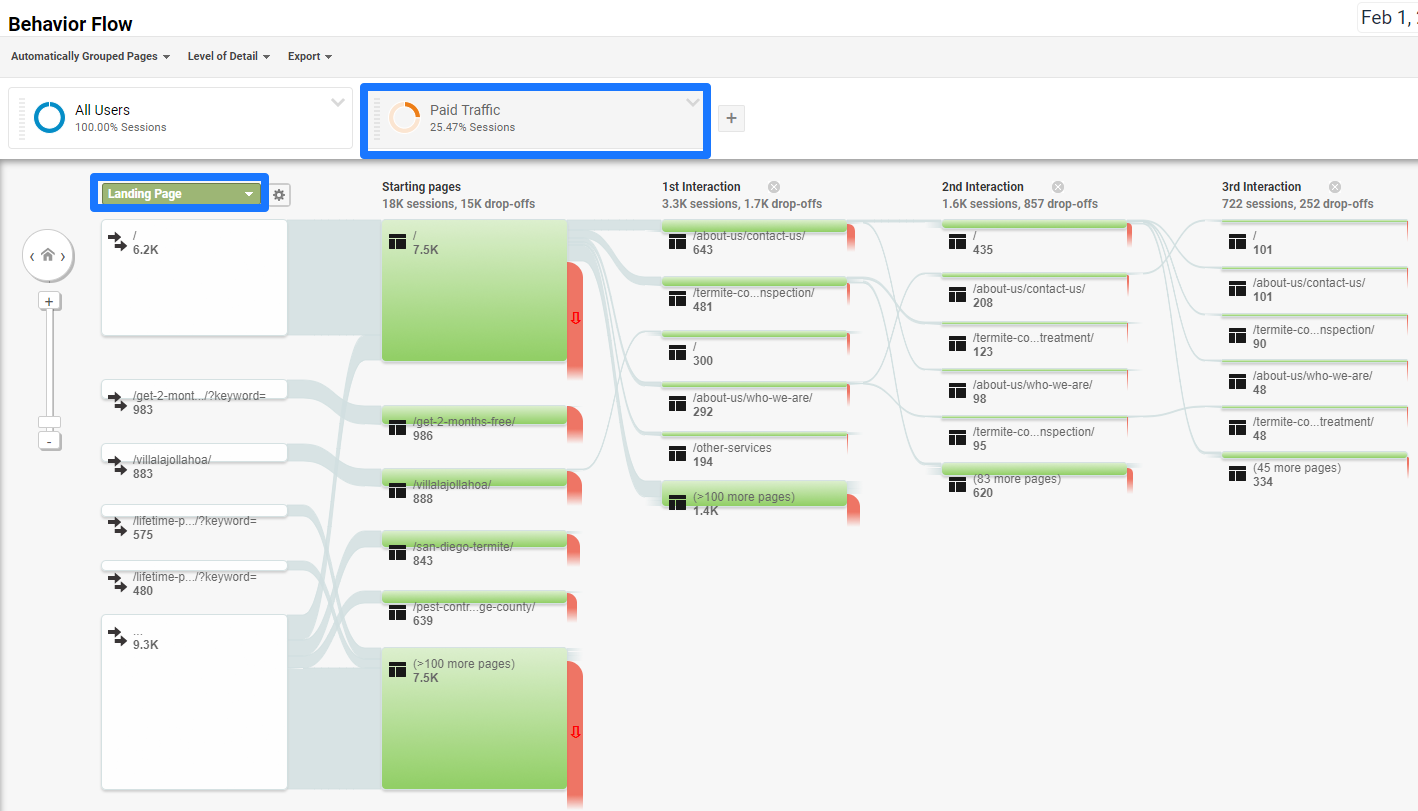 Here you can analyze the typical routes that different forms of traffic take when hitting your site.