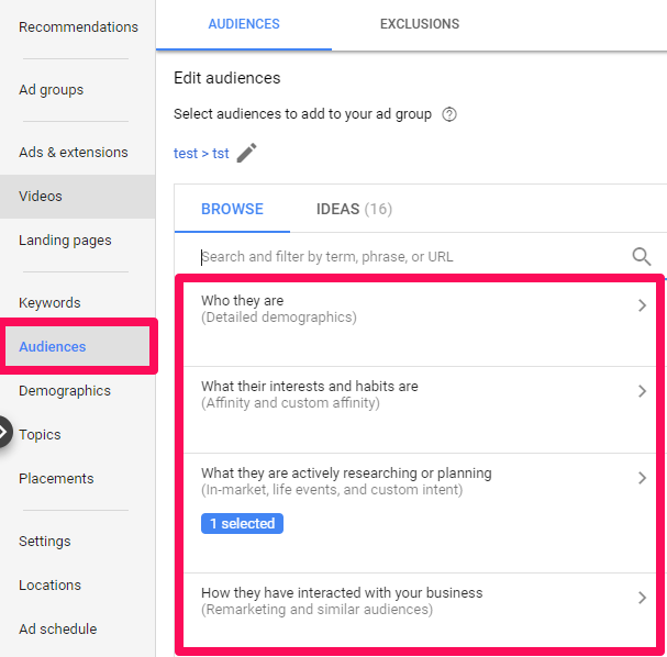Once you’ve selected an audience idea to run with, you should also start excluding audiences that won’t convert.