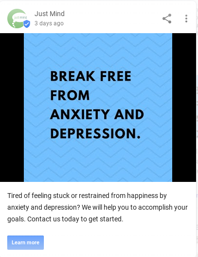 This Google Post from Just Mind in Austin quickly demonstrates value and encourages action:
