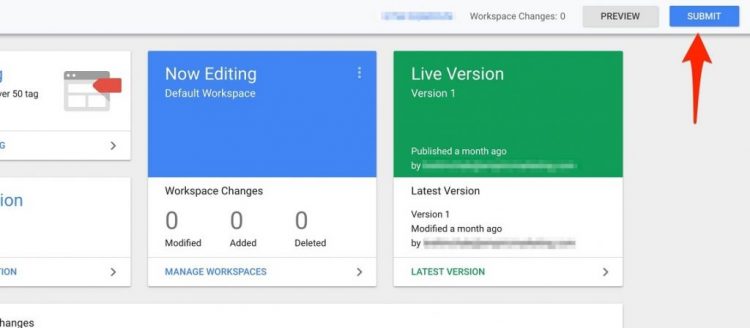 Once you add in your tags from each respective channel, select the “Submit” button at the top of the page. This will push the changes you made to Tag Manager Live: