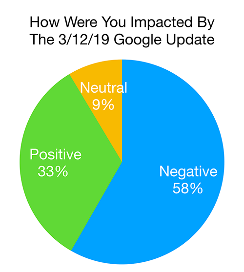 About ten days ago we began collecting data from you all around the Google March 2019 core update that touched down on March 12th. We collected over 500 responses and I wanted to share the results with you all.