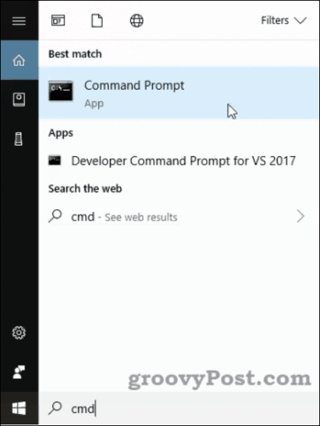 The easiest way is to click in the search bar on your Start Menu and start typing cmd for the command shell or powershell for PowerShell. Here’s what it looks like for cmd.