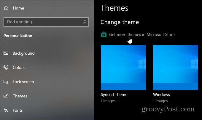 If you don’t care to go through all the trouble, you can install pre-made themes from Microsoft. Just head to Settings > Themes and click the Store link. For more details on that, check out our article on how to install Windows 10 themes from the Microsoft Store.