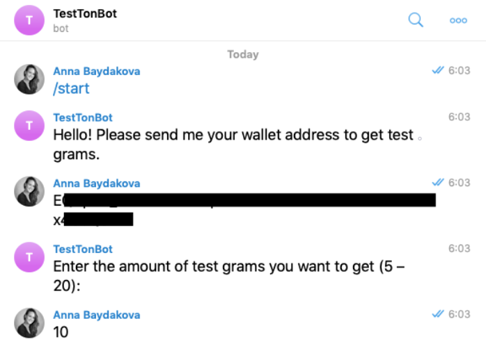 Users can also get testnet grams from a special Telegram bot, asking it to send from 5 to 20 tokens. A test transaction took just a minute for this CoinDesk reporter, though the bot warned it could take longer at busy times.