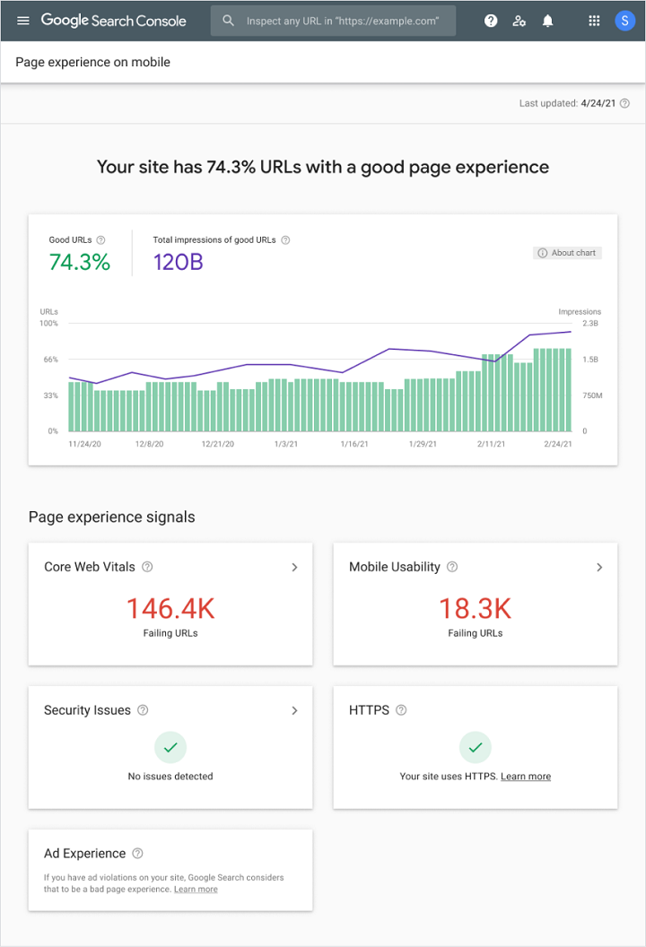 Site owners can also use the report to dig into the components of page experience signal to gain additional insights on opportunities for improvement.