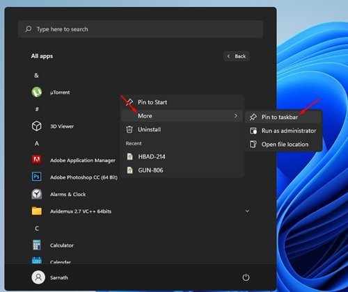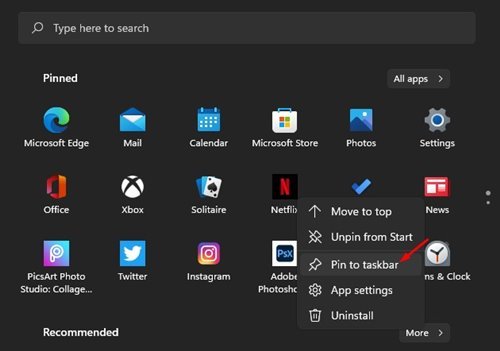 How to Pin Apps to Taskbar in Windows 11 Start Menu
