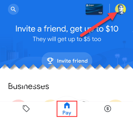 Open the Google Pay app on your iPhone or Android device. From the main “Pay” tab, tap your profile photo in the top-right corner. If this is your first time using the app, you’ll need to sign in with a Google account first.