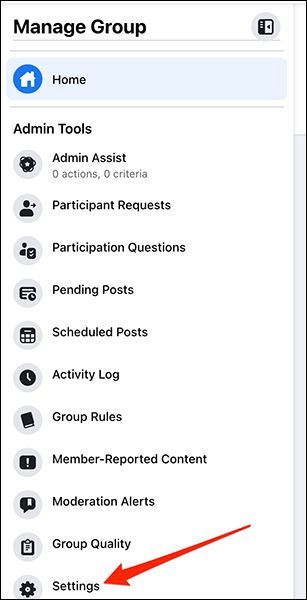 On your group screen, from the “Admin Tools” section on the left, select “Settings.”