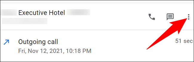 In your call log, tap the number you want to block. Then, in the number screen’s top-right corner, tap the three dots.