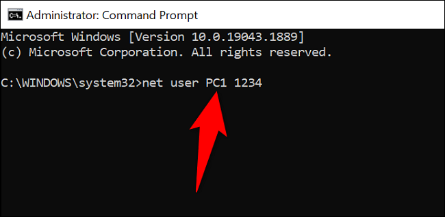 On the Command Prompt window, type the following command and press Enter. In this command, replace USERNAME with the username whose password you want to change and PASSWORD with the new password you want to use.