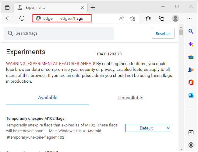 Open Microsoft Edge, edge://flags into the address bar, and hit Enter.