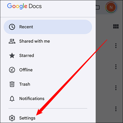 Open Google Docs and tap the three-line menu icon in the top-left corner.