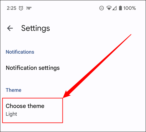 Now, choose the “Theme” option, which will allow you to pick dark mode. This option is called “Choose Theme” on Android.