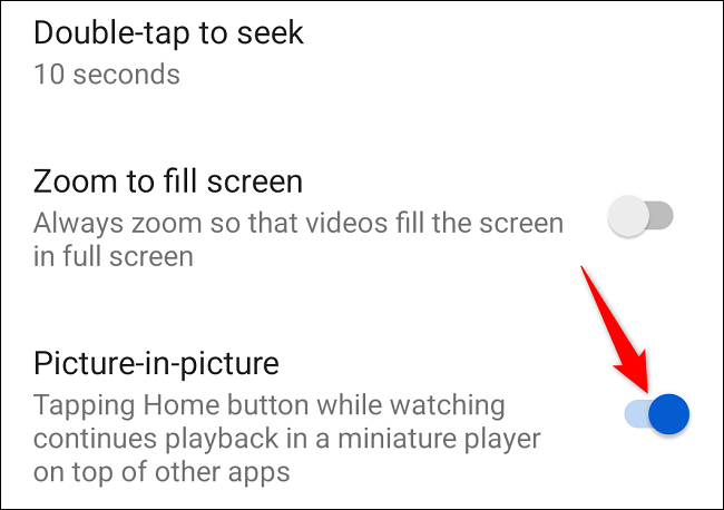 Turn on the “Allow Picture-in-Picture” option. Then, close Settings.