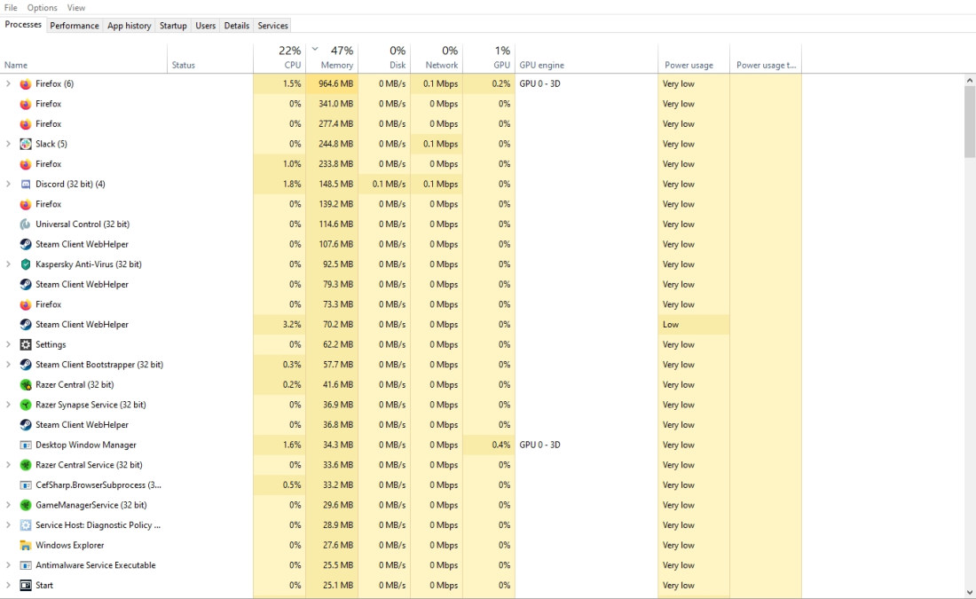 You can then click on the app or process and click End Task at the bottom right corner of the window to kill it off. This is kind of a temporary fix because once you relaunch that application, your RAM usage will just go up again.